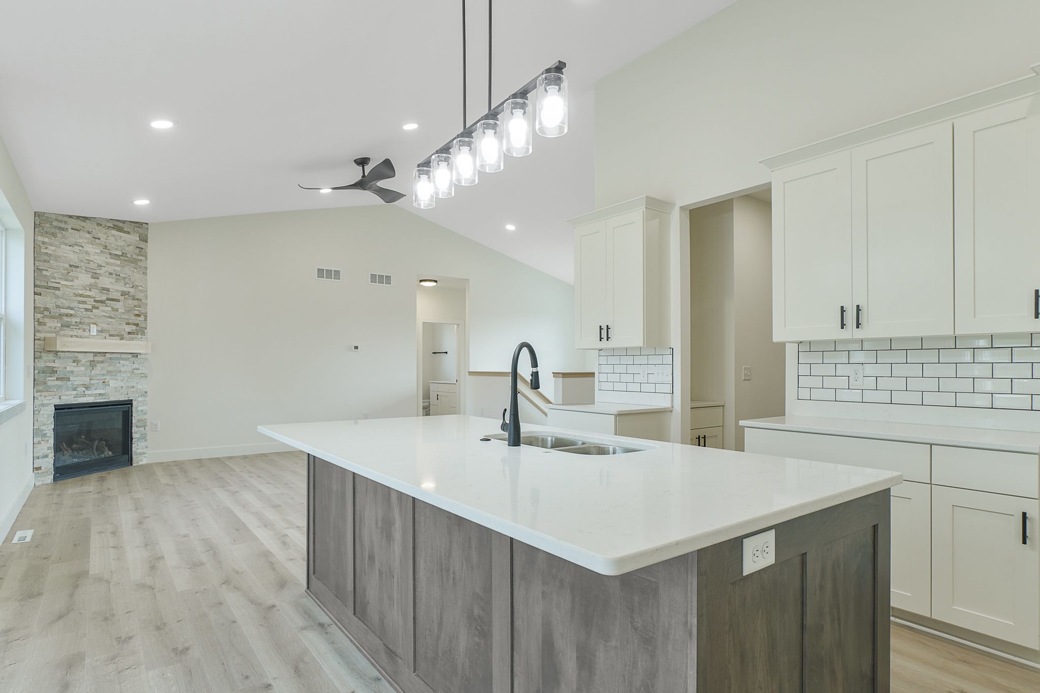 The Yahara Riverside model features 1738 sf, 3 bedrooms and 2 full bathrooms. This is a split ranch layout with the primary suite on one end of the home, and the 2 secondary bedrooms on the other end. This home features a large open living room kitchen area with 12' vaulted ceiling. The kitchen has plenty of cabinetry including an 8ft island and walk in pantry. The primary suite has a tray ceiling, large walk in closet, double vanity, and tiled shower. This home also features a large mud room laundry area with lockers, and a command center for electronic charging. Other then the vaulted ceiling, the home has 9ft ceilings throughout including in the basement for more spacious living.